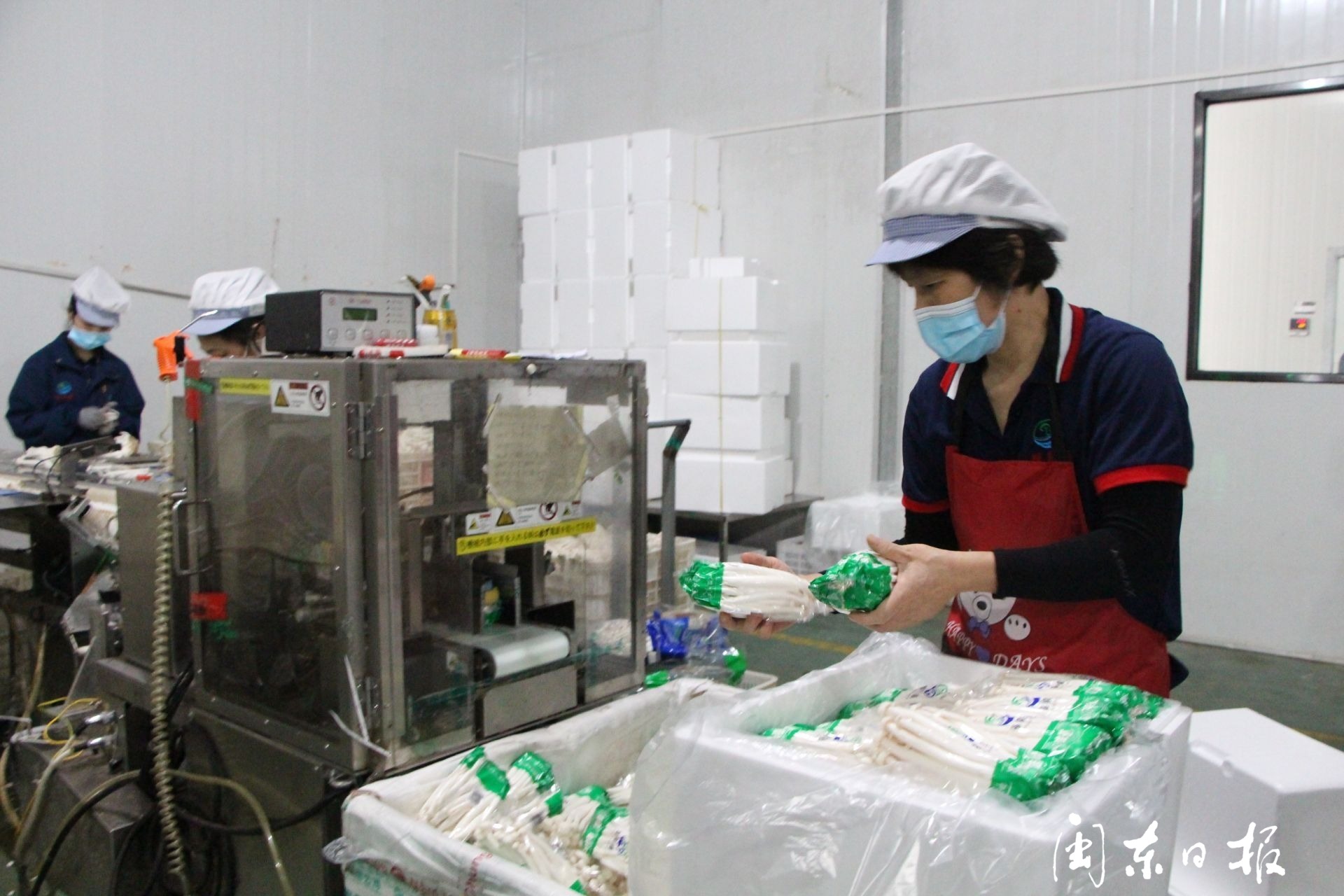 日前,在位于古田县凤埔乡食用菌产业园区的福泉鑫生物科技有限公司内,工人们正在对海鲜菇进行挑拣包装。据了解,该园区目前已入驻福泉鑫、富康、禾兴、绿华、鑫康达等5家食用菌生产企业,涵盖食用菌生产、加工、销售全产业链,2019年,该园区总产值达到2.8亿元。