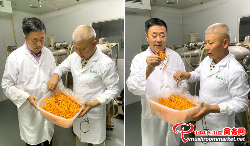 辽宁省食用菌协会常务副会长刘喜杰在聚鑫菌业董事长张治平的陪同下,重点考察聚鑫菌业蛹虫草生产、育种基因库、公司生产车间,听取“虫草多糖”项目介绍,并对蛹虫草上下游联动、产品高附加值、赋能大健康产业链等角度给予高度赞誉。