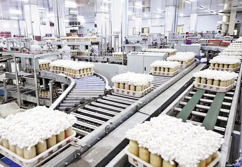 3月25日,河北省昌黎县大蒲河镇一家食用菌企业的工人在食用菌分装线上工作。