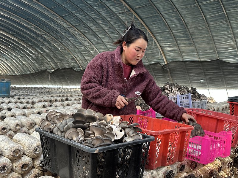 走进肃州镇任洪晏的食用菌大棚,暖意扑面而来,鲜嫩的平菇层层叠叠簇拥在菌棒上,任洪晏和妻子正忙着采摘、分拣,两人手指翻飞间,饱满的平菇被整齐装入篮筐,脸上满是丰收的笑意。
