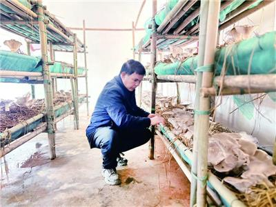 村里工作人员负责日常管护,定时查看温湿度、光照等情况,及时通风。村民也参与场地改造、放置菌料、补水和采收,在家门口实现就业。